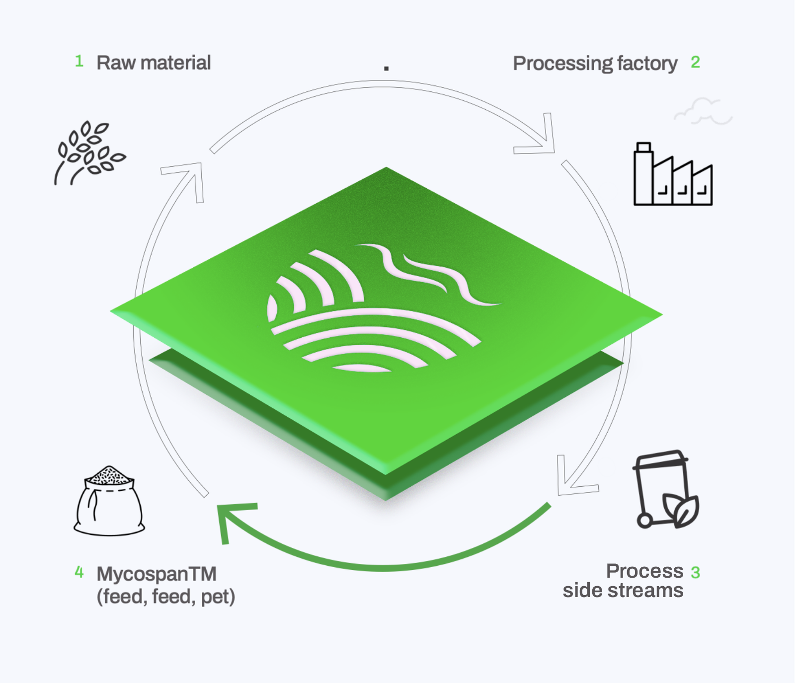 MycoSpan™ is grown through a simple and natural fermentation process that converts underused side streams into nutrient rich mycelium with no waste remaining at the end.